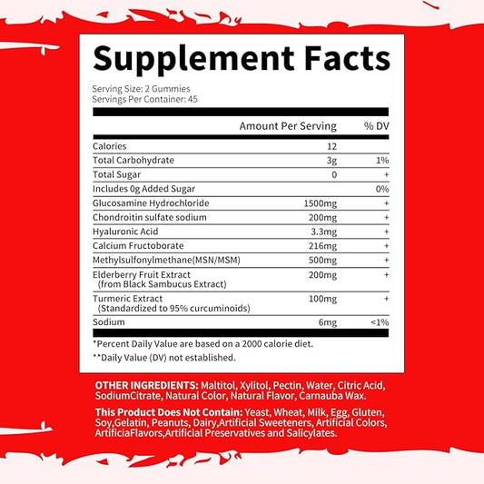 Glucosamine Chondroitin Gummies - Extra Strength Joint Support Supplement with MSM & Elderberry for Natural Joint, Antioxidant Immune Support for Adults, Men & Women 90 Strawberry Gummies