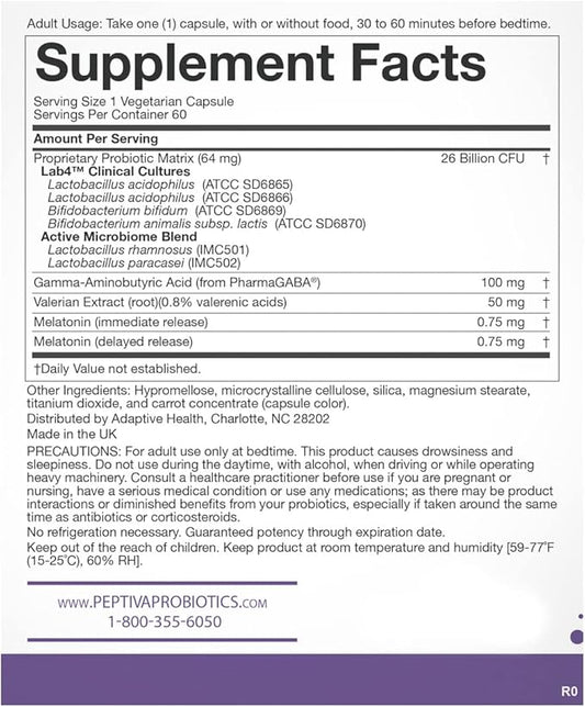 Peptiva 26 Billion CFU Probiotic and Sleep Support - Clinically Validated Multi-Strain Probiotic - Lactobacillus and Bifidobacterium, Melatonin - 60 Count