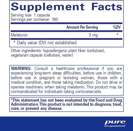 Pure Encapsulations Melatonin 3 mg - Antioxidant Supplement to Support Natural Sleeping & Relief of Occasional Sleeplessness - for Natural Sleep Support* - 180 Capsules