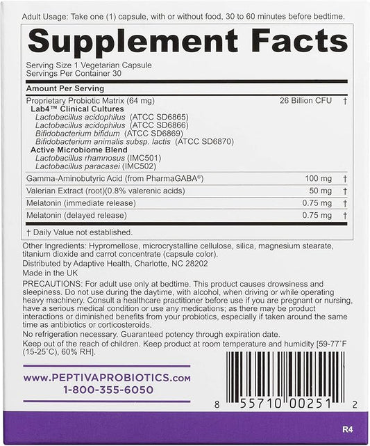 Peptiva 26 Billion CFU Probiotic and Sleep Support - Clinically Validated Multi-Strain Probiotic - Lactobacillus and Bifidobacterium, Melatonin - 30 Count